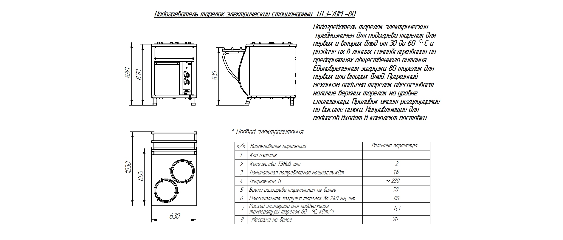 Прилавок для подогрева тарелок ПТЭ-70М-80