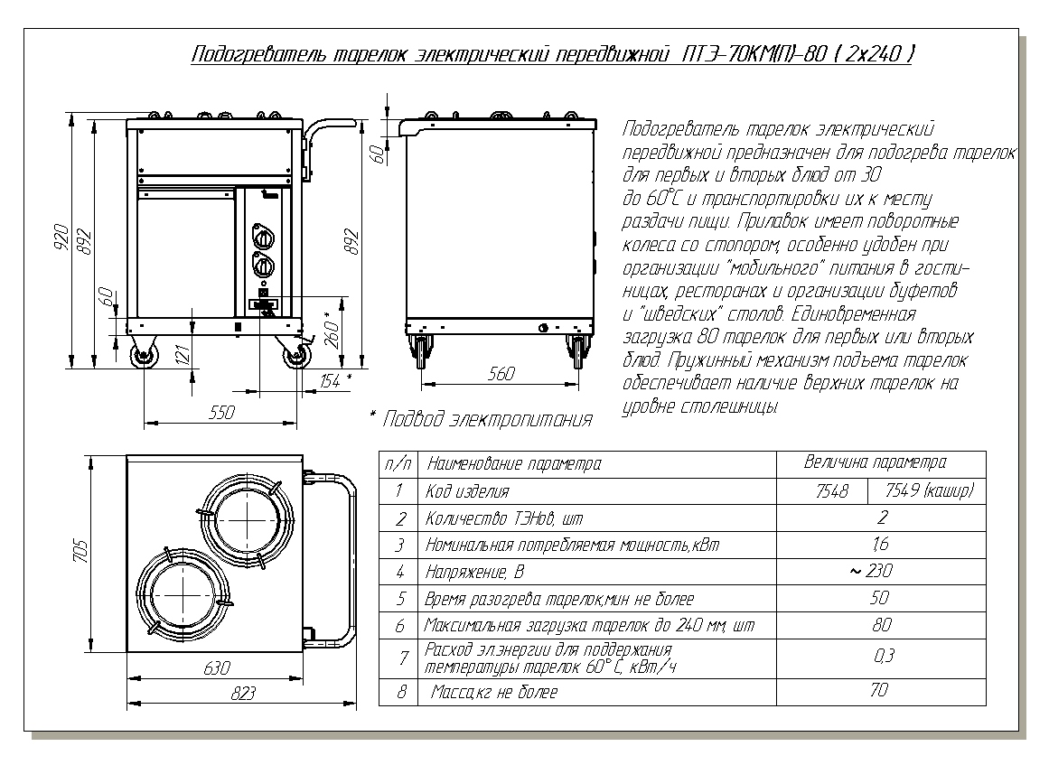 Прилавок для подогрева тарелок ПТЭ-70КМ(П)-80