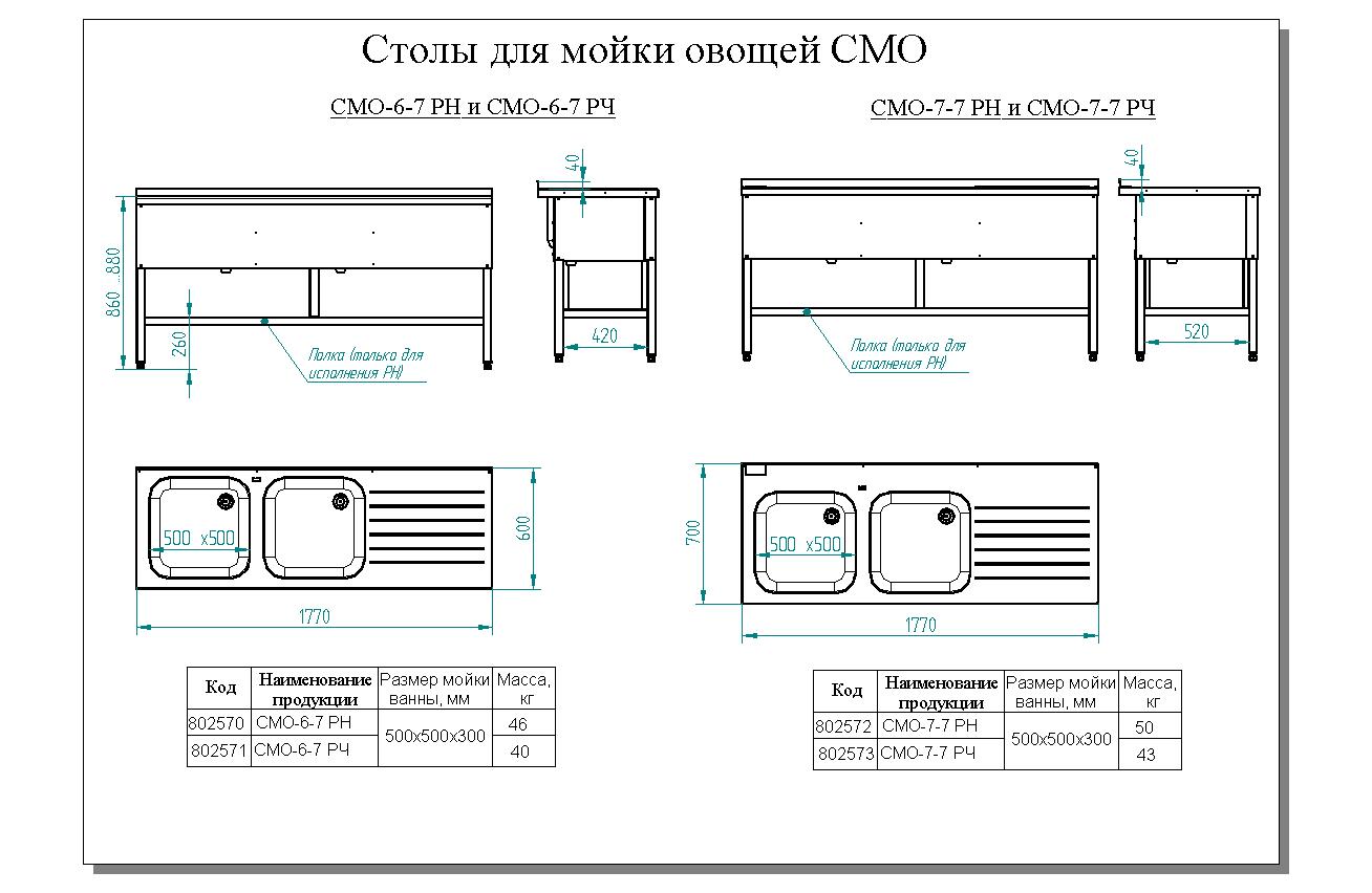 Стол для мойки овощей СМО-6-7 РН (вся нерж.)